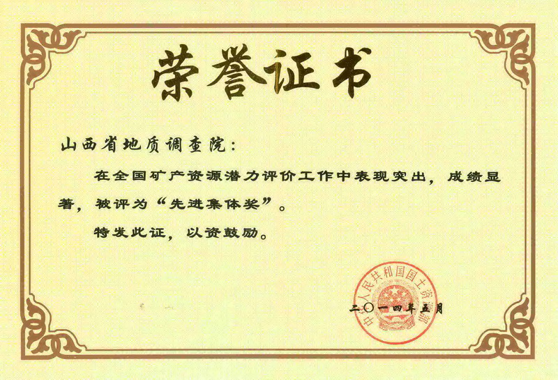 研究院始終堅持“質(zhì)量第一,誠信為本,勇于創(chuàng)新”的宗旨,原始資料及成果報告優(yōu)良率100%,優(yōu)秀率達75%。完成的西藏1∶25萬土則崗日幅、山西1∶25萬忻州市幅區(qū)域地質(zhì)調(diào)查獲國土資源部科學技術(shù)二等獎;在全國優(yōu)秀圖幅展評中1∶25萬忻州市幅獲一等獎,1∶25萬托和平錯、應(yīng)縣幅及1∶5萬御棗口幅獲二等獎,1∶25萬岢嵐縣幅、臨汾市幅、侯馬市幅等6個項目獲三等獎,其中1∶25萬、應(yīng)縣幅、岢嵐縣幅、侯馬市幅獲中國地質(zhì)調(diào)查成果二等獎。